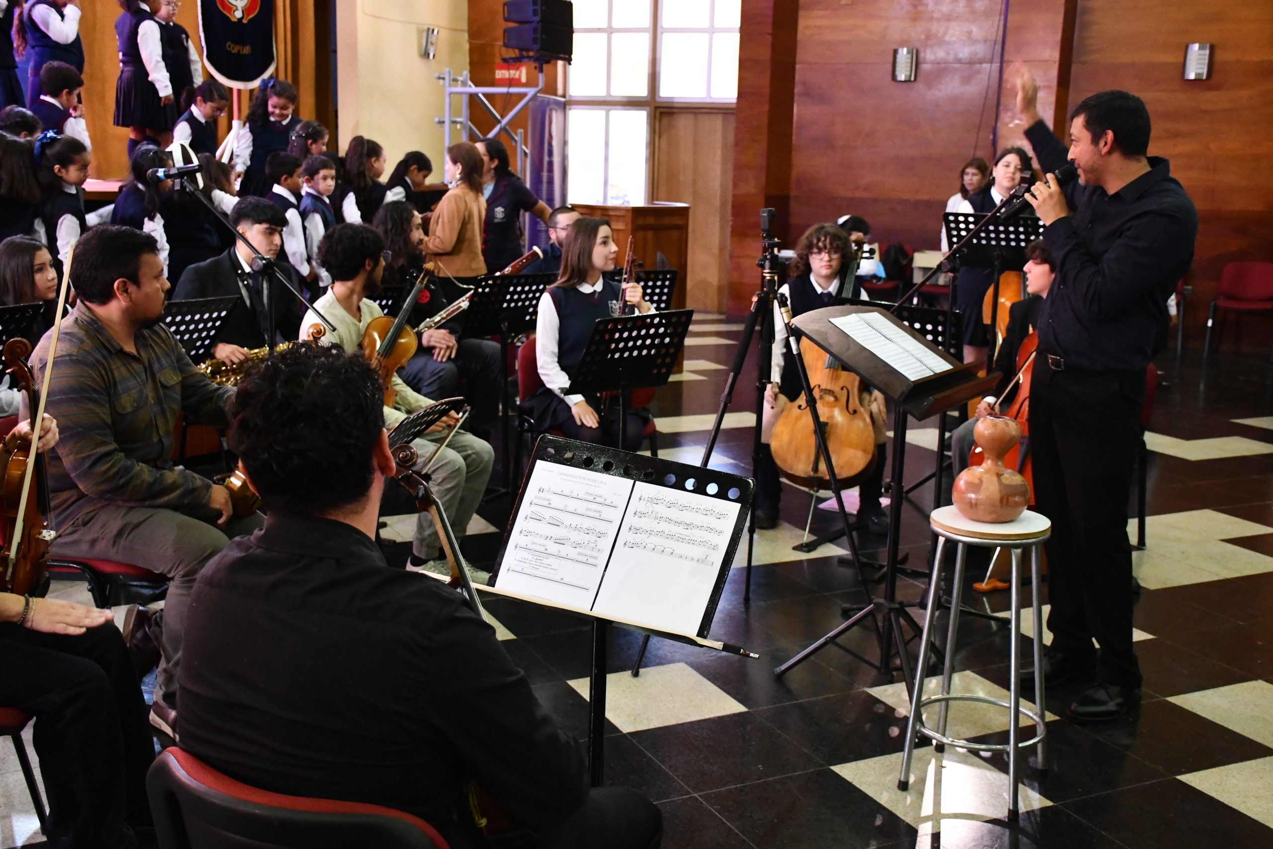 La jornada contó con un concierto protagonizado por un coro de cerca de un centenar de estudiantes de enseñanza básica, junto a la colaboración de integrantes de la orquesta del establecimiento. Madres, padres y personas apoderadas acompañaron esta instancia, destacando el valor de la música como espacio de encuentro y formación.