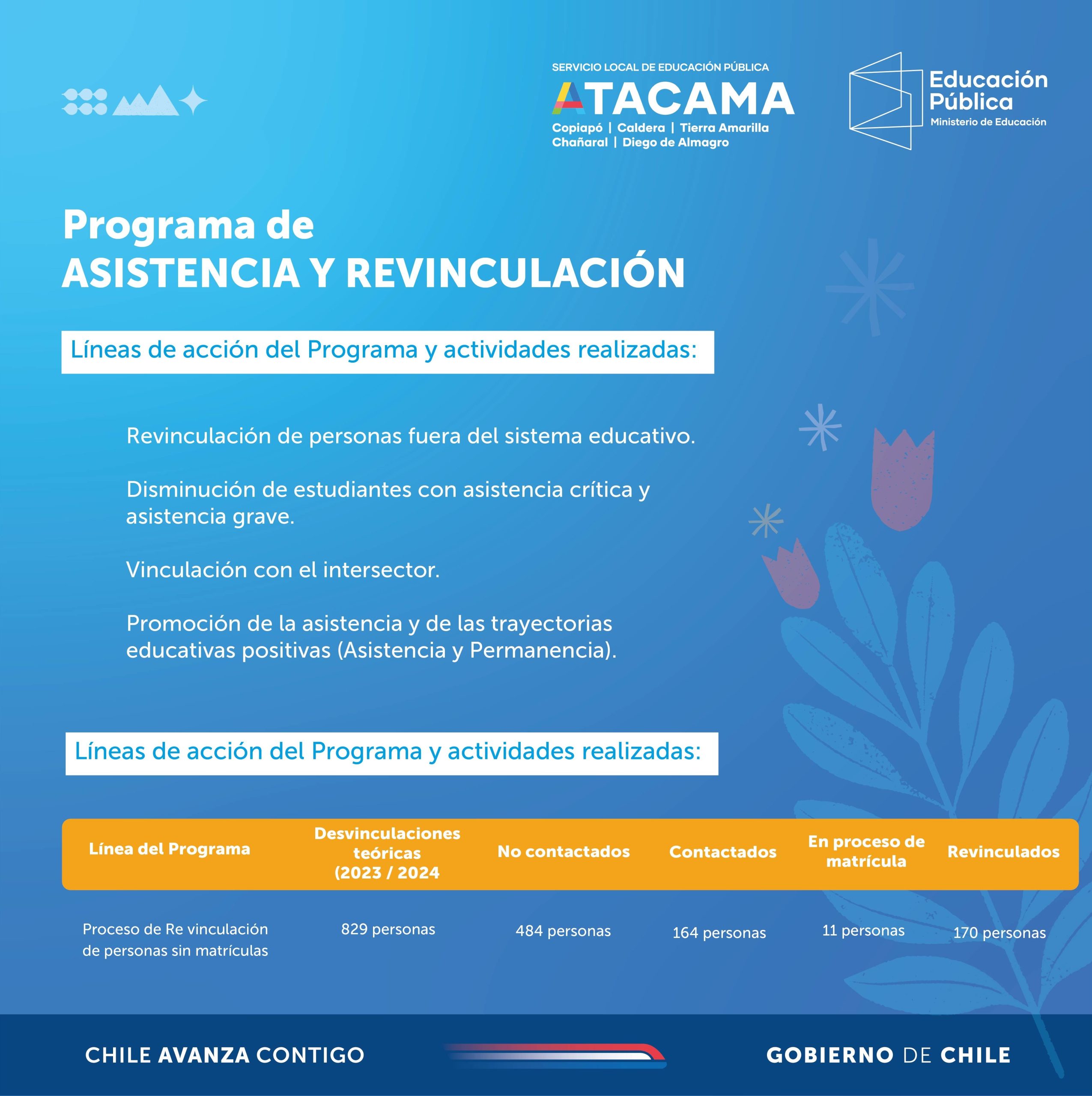 El Servicio Local de Educación Pública (SLEP) Atacama continúa avanzando con fuerza en la implementación del Programa de Asistencia y Revinculación, una iniciativa clave del Plan de Reactivación Educativa que busca asegurar trayectorias educativas continuas y significativas para niños, niñas y adolescentes del territorio.