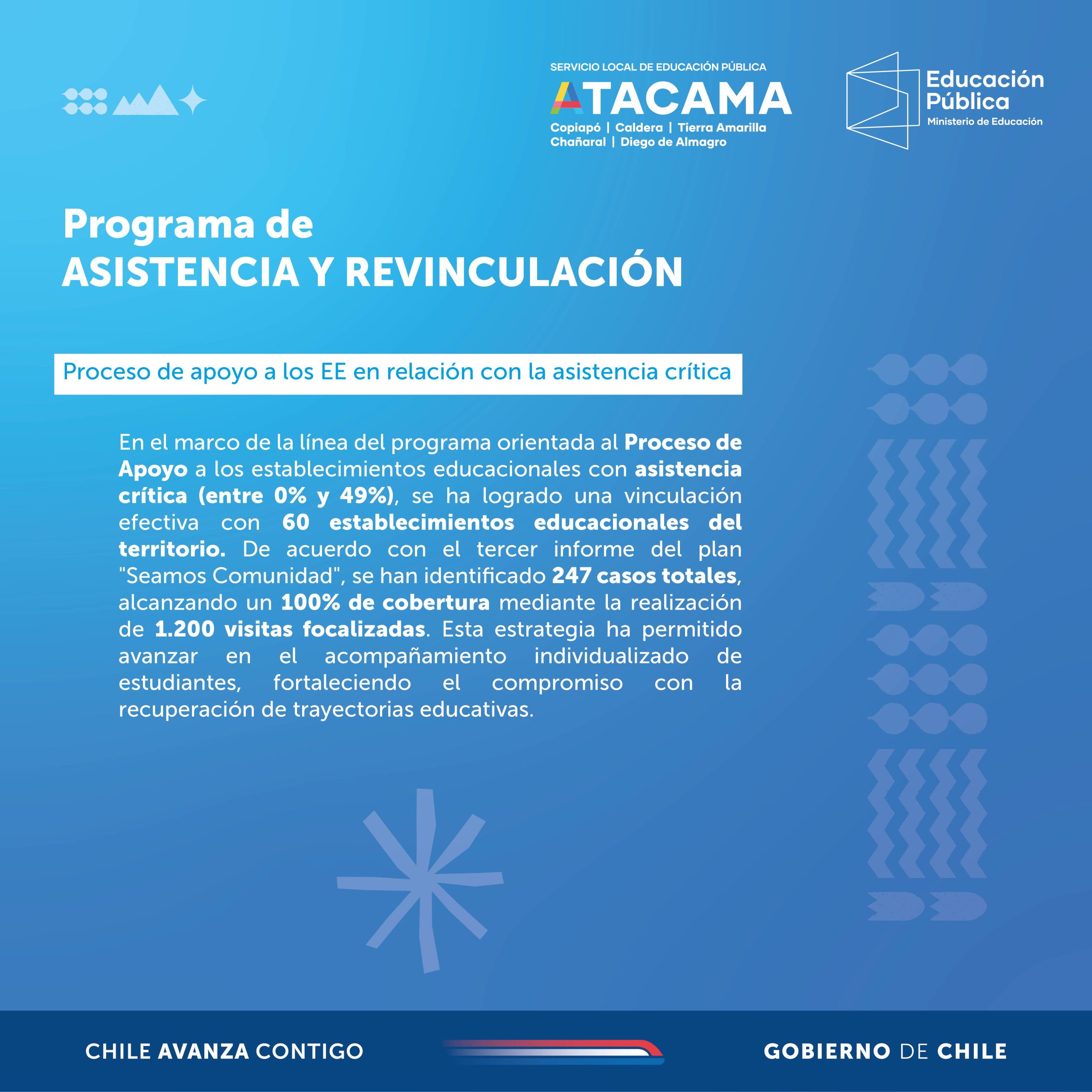 Este trabajo sostenido refleja el compromiso del SLEP Atacama por garantizar el derecho a la educación de todos los estudiantes del territorio, mediante acciones concretas, articuladas y centradas en las necesidades de cada comunidad educativa.