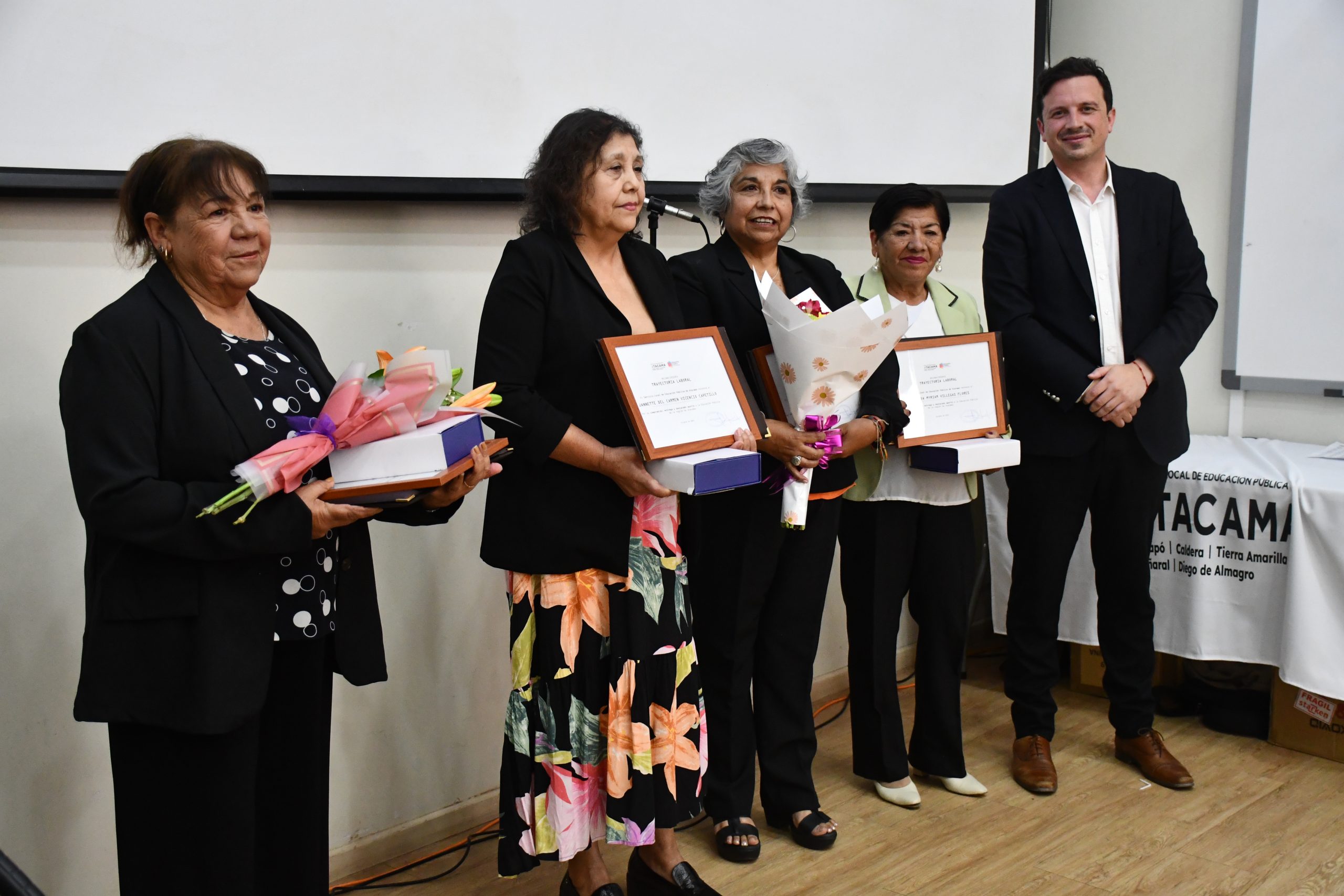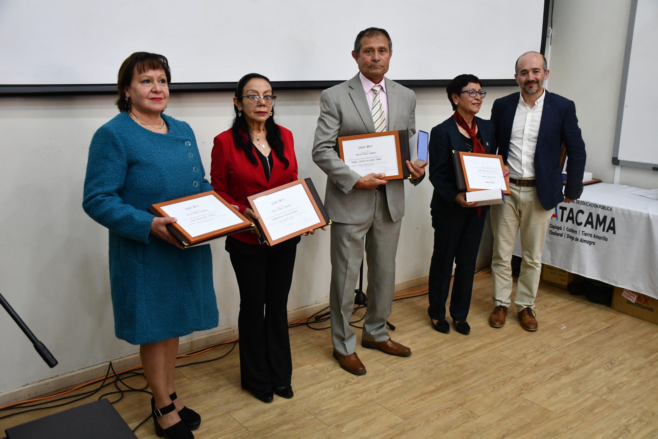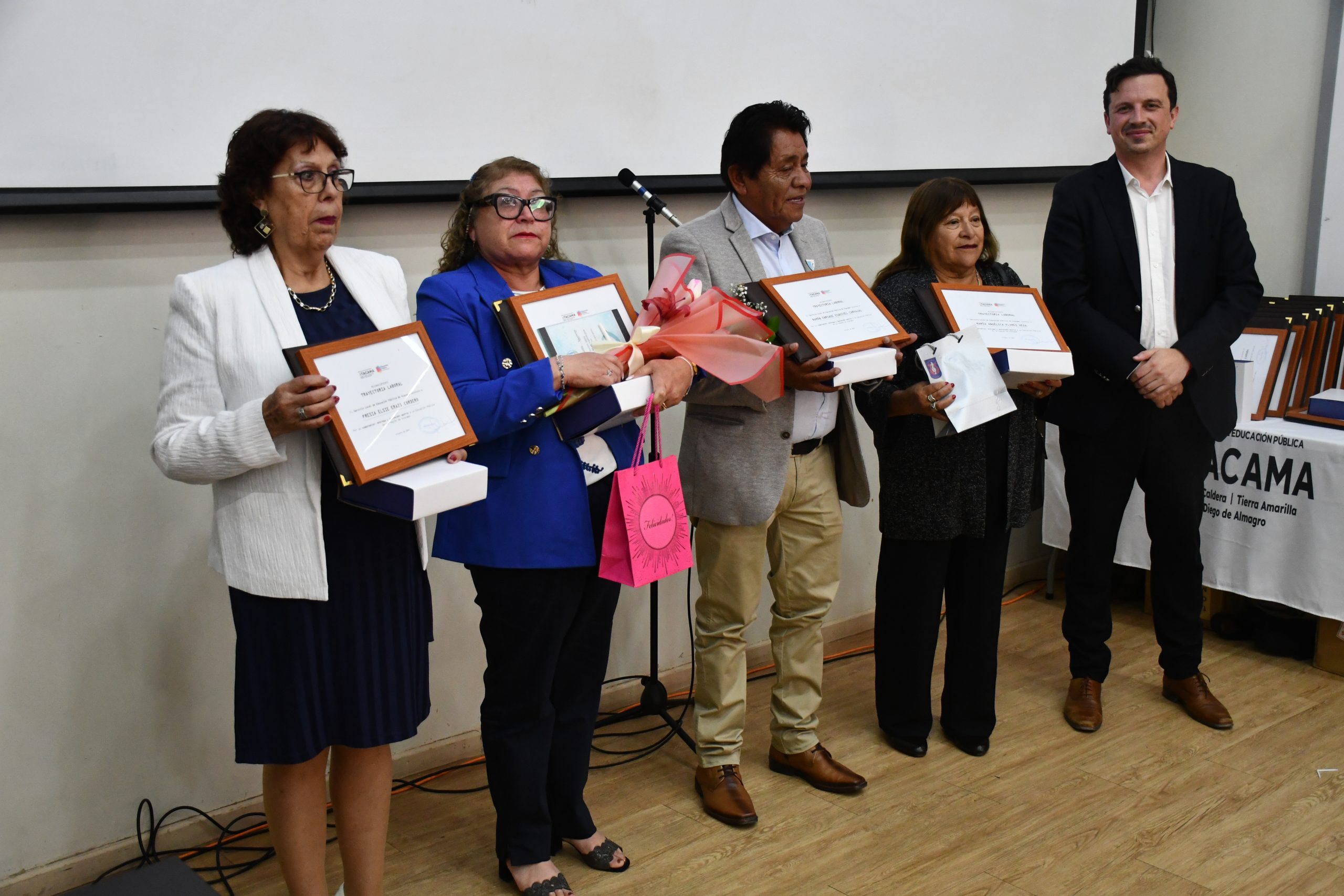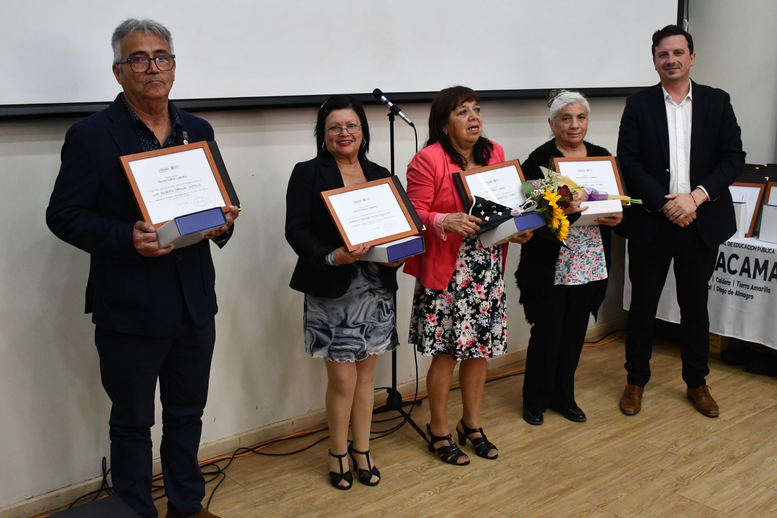 En total, 43 asistentes de la educación provenientes de 26 establecimientos educacionales de las comunas de Copiapó, Caldera, Tierra Amarilla, Chañaral y Diego de Almagro fueron homenajeados por su importante labor en el acompañamiento y formación integral de niñas, niños y jóvenes de la región.