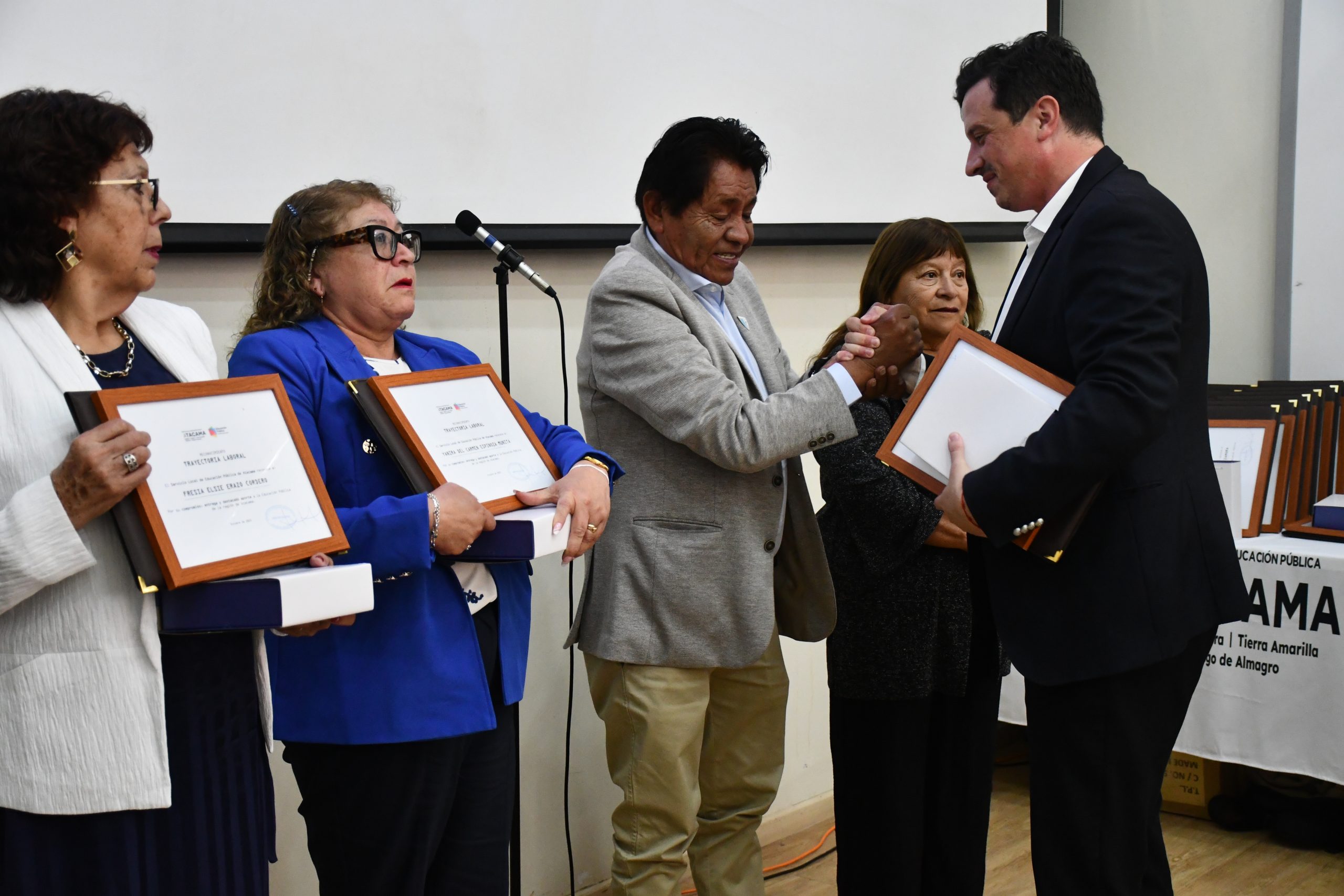 El Director Ejecutivo de SLEP Atacama, Daslav Mihovilovic, junto a autoridades educativas y representantes de las comunidades escolares, entregaron un reconocimiento a cada uno de los asistentes de la educación que culminan su vida laboral, agradeciendo su entrega, vocación de servicio y aporte al fortalecimiento de la educación pública.